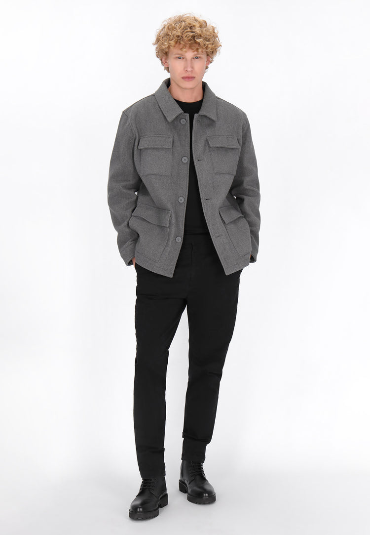 Klasyczna męska kurtka o regularnym kroju, idealna dla fanów casualowej młodzieżowej mody. Wykonana z trwałego materiału, wyróżnia się gładkim, jednolitym wzorem i minimalistycznym designem. Kurtka posiada klasyczny kołnierz, długie rękawy oraz zapięcie na guziki, co nadaje jej ponadczasowy charakter. Dwie kieszenie z patkami na piersi dodają funkcjonalności i podkreślają styl. To wszechstronny wybór, który sprawdzi się zarówno na co dzień, jak i jako bardziej klasyczny model do garderoby. Ta kurtka jest częścią Kolekcji Odzieży Wierzchniej.