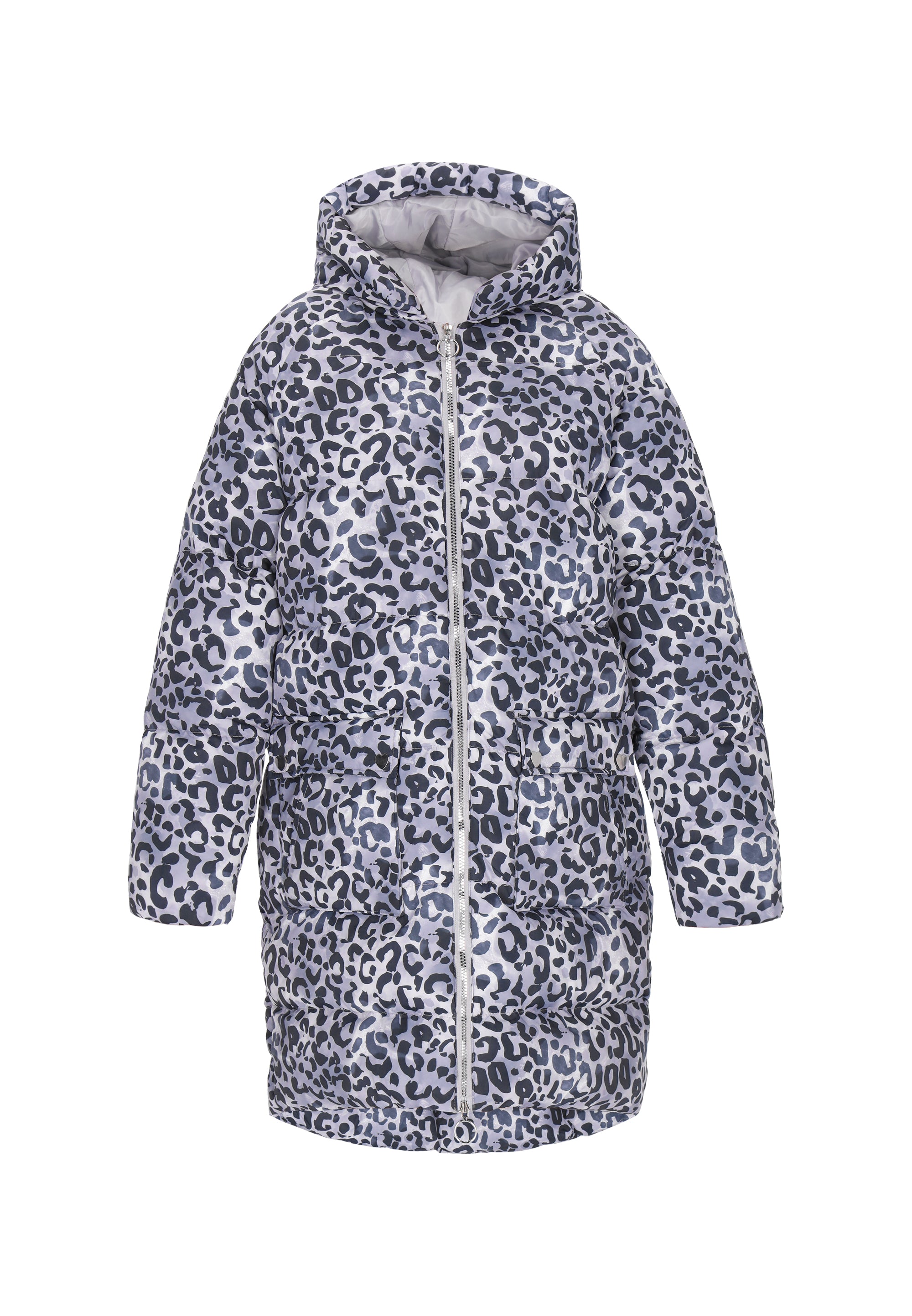 Introducing the down coat from the Mymo At Night Collection. This bold leopard print is the perfect blend of comfort, style, and functionality, designed for the modern, confident youth. The relaxed fit allows for freedom of movement, while the insulated construction and long length protect against the cold. A hood, long sleeves with elastic cuffs, and a zipper closure ensure maximum comfort and protection. Additional pockets enhance practicality, and the woven material adds a stylish touch. This is the perfect choice for chilly evenings and winter dayswhen you want to look stylish while feeling comfortable.