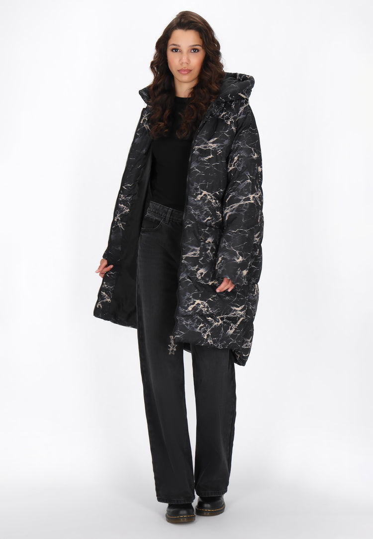 Keyword: abstract print, casual, coat, comfy, elastic cuffs, flap pockets, hood, long sleeves, mymo rocks collection, outerwear, puffer coat, regular fit, woven, young fashion, zip-up